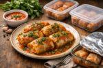 Подача, хранение и заморозка Прежде всего, подавайте горячими со свежей зеленью. Во-первых, остатки храните до двух суток в холодильнике. Во-вторых, замораживайте порционно в контейнерах. Более того, разогревайте в духовке, чтобы сохранить текстуру. Точно так же, оставьте часть соуса отдельно. Он спасет блюдо при разогреве. Бытует вопрос, как не пересушить. Ответ прост, держите крышку закрытой и добавляйте пару ложек воды.