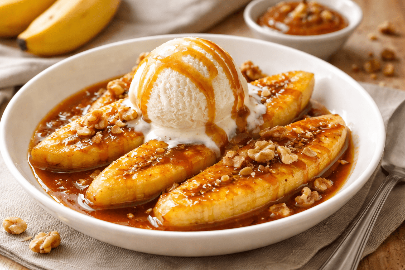 Бананы в карамели со сливками – быстрый десерт, который готовится всего за 10 минут и покоряет сочетанием нежных сливок и сладкой карамели. Прежде всего, Для его приготовления требуется минимум ингредиентов, а результат приятно удивит гостей.