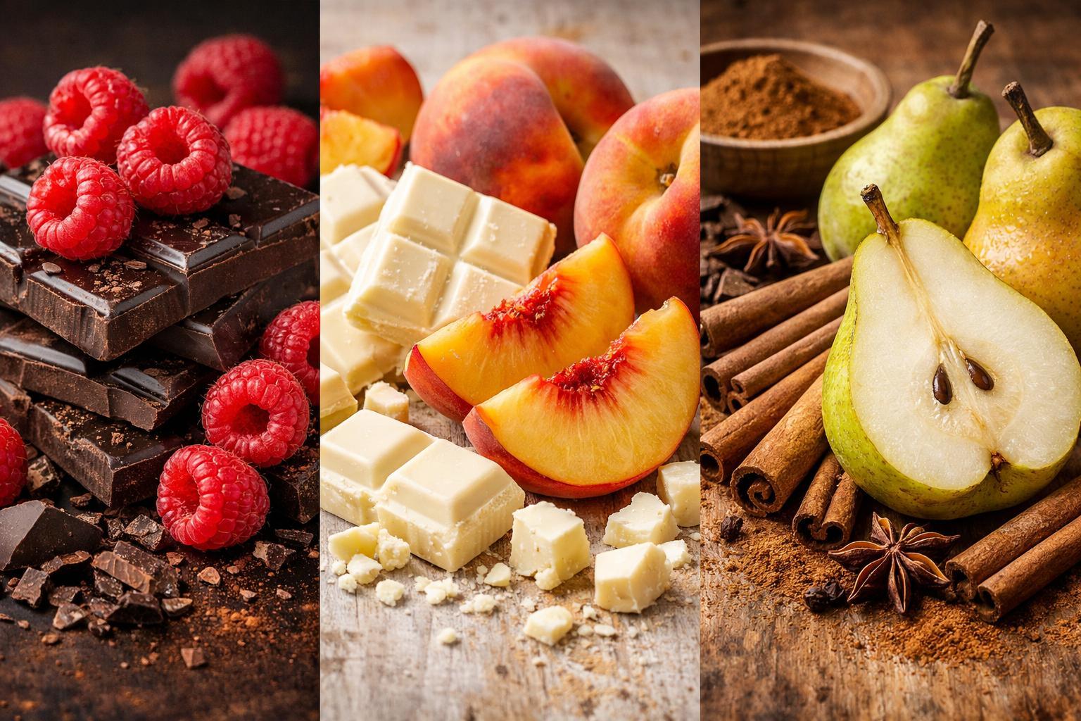 Например, малина и шоколад, персик и белый шоколад, груша с корицей. Точно так же, используйте свежие ягоды, чтобы не добавлять лишней влаги.